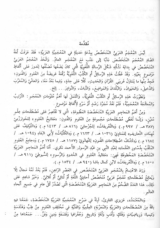 المعتمد معجم متخصص لأنه يتناول مصطلحات العلم وليس ألفاظ اللغة.وهو لا يقتصر على مصطلحات علم معين، وإنما جمع باقة من الألفاظ العربية والمعربة من مختلف العلوم كالطب، والهندسة، والكيمياء، والرياضيات، والفلك واللغة والتاريخ والفنون...