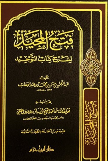 كتاب التوحيد، كتاب هام جدا يبحث في علم التوحيد والعقائد للإمام محمد بن عبد الوهاب، وهذا الكتاب : فتح المجيد شرح لهذا الكتاب حيث بين المسائل التي تضمنها الكتاب وزاد في إيضاحها وشرح النصوص من القرآن والسنة الموجودة في كتاب التوحيد وهي كثيرة جدا