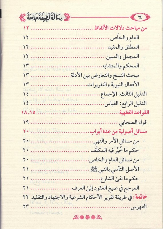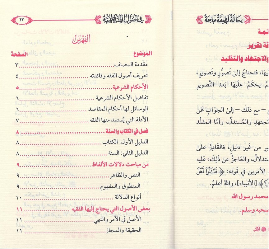 رسالة تضمنت ضوابط وتقعيدات للمسائل المهمة لمادة أصول الفقه وابتعد فيها المصنف رحمه الله تعالى عن الألفاظ الغريبة وعبارات أهل المنطق ولم يتطرق للمباحث التي ليست على علاقة بالأصول.وهي رسالة يحتاج لها المبتدئ والمنتهي كذلك لما حوته من درر وفوائد أودعها الشيخ رحمه الله تعالى فيها.