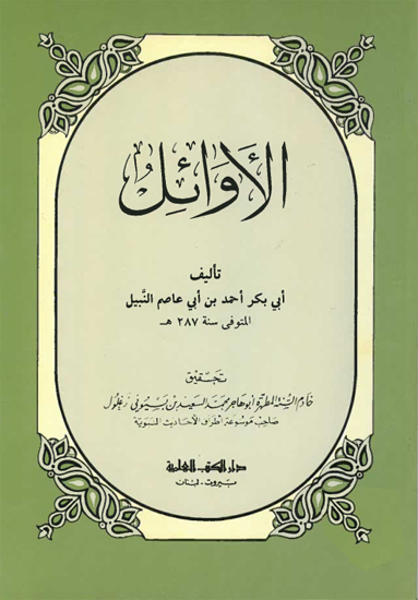 ألف ابن أبي عاصم النبيل كتابه الأوائل في ذكر متى أو أين أحدثت كثير من الأمور لأول مرة أو ذكر من أحدثها، وذلك بذكر العديد من الأحاديث النبوية وأقوال العلماء مع ذكر الأسانيد.