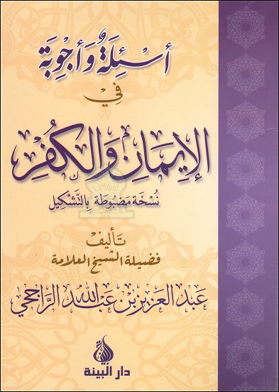 أسئلة وأجوبة في الإيمان والكفر لفضيلة الشيخ عبد العزيز بن عبد الله الراجحي الأستاذ المشارك بقسم العقيدة والمذاهب المعاصرة بجامعة الإمام محمد بن سعود الإسلامية بالرياض بسم الله الرحمن الرحيم الحمد لله والصلاة على رسول الله وعلى آله وصحبه ومن تبعه أما بعد: فقد أذنت بطباعة هذه الأسئلة والأجوبة بعد قراءتها ، رجاء أن ينفع الله بها والله الموفق . وصلى الله على محمد وآله وصحبه وسلم . المؤلف عبدالعزيز بن عبدالله الراجحي 22/3 / 1422هـ بسم الله الرحمن الرحيم الحمد لله والصلاة والسلام على رسول الله وعلى آله وصحبه ومن اهتدى بهداه ........
