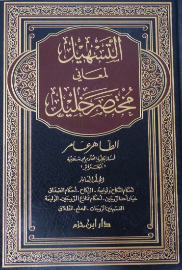 ان هذا المختصر قد طبقت شهرته الآفاق،و شغل الناس به شرقاً وغرباً :شرحاً وتعليقاً ونظماً وعملا.. فهذا المختصر شرحٌ مفيد لطلاب الفقه المالكي، واضح العبارة، سهل المأخذ،و يتناسب مع العصر الحالي،و يحقق الرغبة فيمن يريد فهم مسائل الفقه المالكي بدون الرجوع الى الشروح المطولة.لذلك نقدم بين يديك اخي القارئ هذا الكتاب بعنوان: "التسهيل لمعاني مختصر الخليل" للاستاذ بكلية العلوم الاسلامية في الجزائر الطاهر عامر
