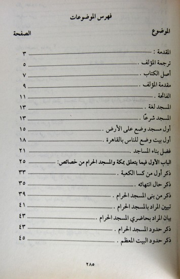 كتاب يشتمل على الأحكام والفضائل والخصائص المختصة بالمسجد الحرام والمسجد النبوي الشريف والمسجد الأقصى وغيرها من مساجد الإسلام، وقد أفرد لكل مسجد من المساجد الثلاثة بابا خاصا به وخص سائر مساجد الإسلام بباب رابع وعلى الكتاب حواشي وتعليقات هامة