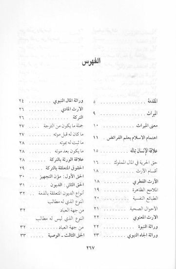 ويحدثنا عن أنواع الإرث، ويحدثنا عن الوصية، والديون، والإرث وموانعه واختلاف الأمم فيه وعدالة الإسلام في المثراث، وكيف اختلف منهج الإسلام عن غيره في هذا الباب تحديدًا، ويذكر لنا المؤلف بالتفصيل كل ما يخص هذا الميراث