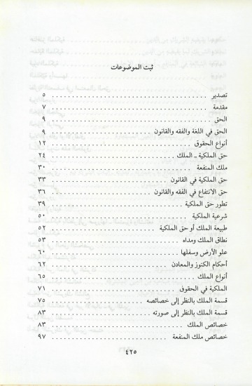 وباعتبار الملك نوعاً من الحقوق كان من الضروري التعريف به وتبين أقسامه وخصائصه بصفة عامة وأن هذه الدراسة العلمية تعتبر مصدراً علمياً لا غنى عنه للباحثين والدارسين ومن يريد منهم التعمق في هذا الموضوع وهو جهد يهدف إلى عصرنه المفاهيم والمصطلحات ويبين إلى معالجة موضوعات الشريعة الإسلامية بأسلوب علمي حديث.