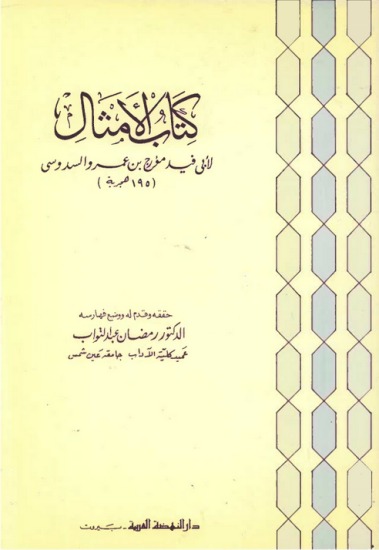 تم تدقيق ومراجعة هذا الكتاب على معلومات الطبعة الورقية ادناه اسم الكتاب الأمثال للسدوسي اسم المؤلف أبو فيد مؤرج بن عمرو السدوسي تاريخ ولادة المؤلف تاريخ وفاة المؤلف 195 دار النشر دار النهضة مدينة النشر بيروت عدد الأجزاء 1 المحقق د. رمضان عبد التواب المراجع الجامع الكبير لكتب التراث العربي والإسلامي المملكة الأردنية الهاشمية مسجل تحت رقم الإيداع لدى دائرة المكتبة الوطنية 2712007