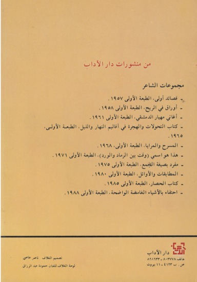 نعرف أن الليل سوف يبقى. نعرف أن الشمس سوف تبقى، لكننا نجهل ما يكون من أمر قاسيون-هذا النبيّ الأصغر المضيء، وما يكون المشهد الأخير، يا قمر الغوطة، يا صوفينا الكبير. أصرخ من جهليز في قلعة الرماد-صرت جرحاً في جسد القلعة، صرت غيماً يعانق الشرفة والإفريز، أصرخ من دهليز: أحتقر الأرض التي تكون لؤلؤة في جوف بلورة مفتوحة كالبحر-منذورة للحب".