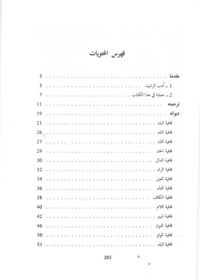 وفي الثاني ديوانه، وفي الثالث فصولاً تتعلق بحياة الرشيد الأدبية، ملحقا ذلك بثبت لأدب الرشيد غير المنظوم