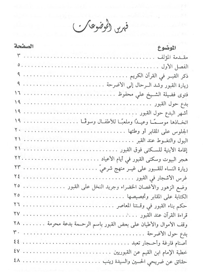 كتاب ينصرف موضوعه الى شرح الاحكام المتعلقة بالتبرك بالقبور والطواف بها سواء أكانت هذه القبور في المساجد أم في غير المساجد ويبين أن الطواف بتلك القبور والتبرك بها هو امر محرم ولا يجوز بالشرع الاسلامي وقد اعتمد المؤلف على ادلة مستمدة من كتاب الله تعالى وسنة نبيه عليه السلام