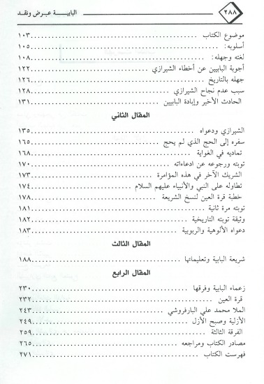 فى لقاء آخر مع البابية للشيخ إحسان إلهى ظهير يقوم فيه بتعريتها وفضح معتقداتها العقيمة وعلاقتها بالروس الذين صنعوها بأيدهم وذلك فى محاولة لإجتياح إيران.. ذلك العروس اللعبة التى أرادتها وجودها فى هذا الشيرازى الذى نتناول سيرته وحياته وإنحرافه ودعوته فى هذا الكتاب بالتفصيل حتى مماته مستكملين الدراسة مع زعماء البابية وفرقها ومناقشة أسباب إنتشارها وأخيراً إبادتهم تلك الخرافات والمعتقدات البائسه وهذه الدراسة الشاملة نقدمها لقرائنا من الباحثين عن الحقائق فى هذا الكتاب.