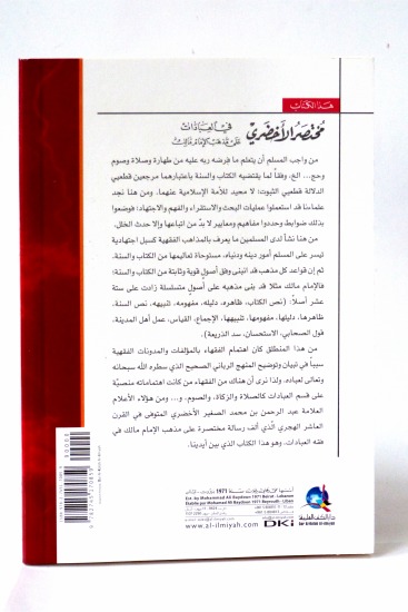 كتاب في الفقه المالكي وهو عبارة عن متن اشتهر باسم مختصر الاخضري تعرض فيه المؤلف الى مسائل فقه العبادات من طهارة واقسامها والصلاة وفرائضها وشروطها .وختمه بيان السهو ، وللمختصر شروح كثيرة لاهميته ، ويليه نظم المختصر للمؤلف نفسه