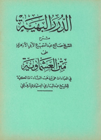 كتاب « الدرر البهية شرح متن العشماوية »، لصاحبه الشيخ العلامة، خادم الفقه المالكي عليه رحمة الله « صالح عبد السميع الآبي الأزهري المالكي، أحد علماء القرن 14 الهجري »، هو شرح نفيس، ليس بالطويل الممل، ولا بالقصير المخل، على " متن العشماوية " في مسائل فقه العبادات على المذهب المالكي.