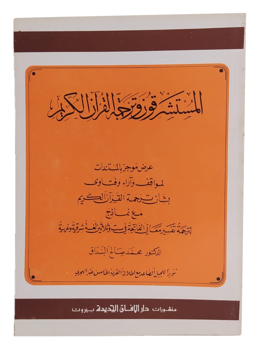 في هذا الكتاب عرضٌ مُوجَز بالمُستندات لمواقف وآراء وفتاوى بشأن ترجمة القرآن الكريم، مع نماذج لترجمة تفسير معاني الفاتحة في ستٍّ وثلاثين لغة شرقية وغربية، حيث يقوم الكاتب في هذا الكتاب بتفسير سورة الفاتحة و يقول أن مجموع كلماتها 25 كلمة فقط، كما أنه ألحق نماذج مختارة لترجمة الفاتحة كما هي في عدة لغات شرقية وغربية يتكون من 243 صفحة مقسمة في ثلاث فصول.