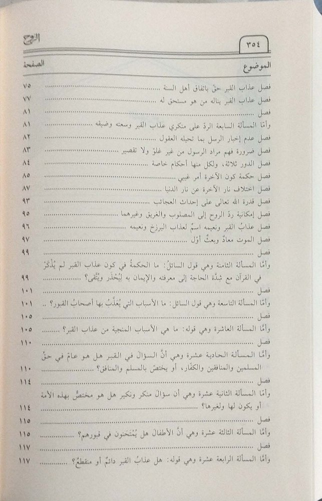 كتاب يطرح فيه المؤلف مسألة الروح لم ترد في غيره من كتب السلف، فيه معلومات معرفية عن النفس والروح والفرق بينهما، وعلاقة الروح بالجسد، ومصيرها بعد الموت. وذلك استنادا إلى الكتاب والسنة مؤيدا بالحجة والبرهان النقليين والعقليين والمنطقيين
