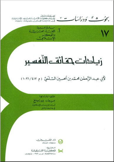 زيادات حقائق التفسير لأبي عبد الرحمن محمد بن الحسین السلمي تأليف: أبي عبد الرحمن محمد بن الحسين السلمي