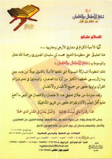 شرح تحفة الأطفال والغلمان في أحكام تنزيل القرآن