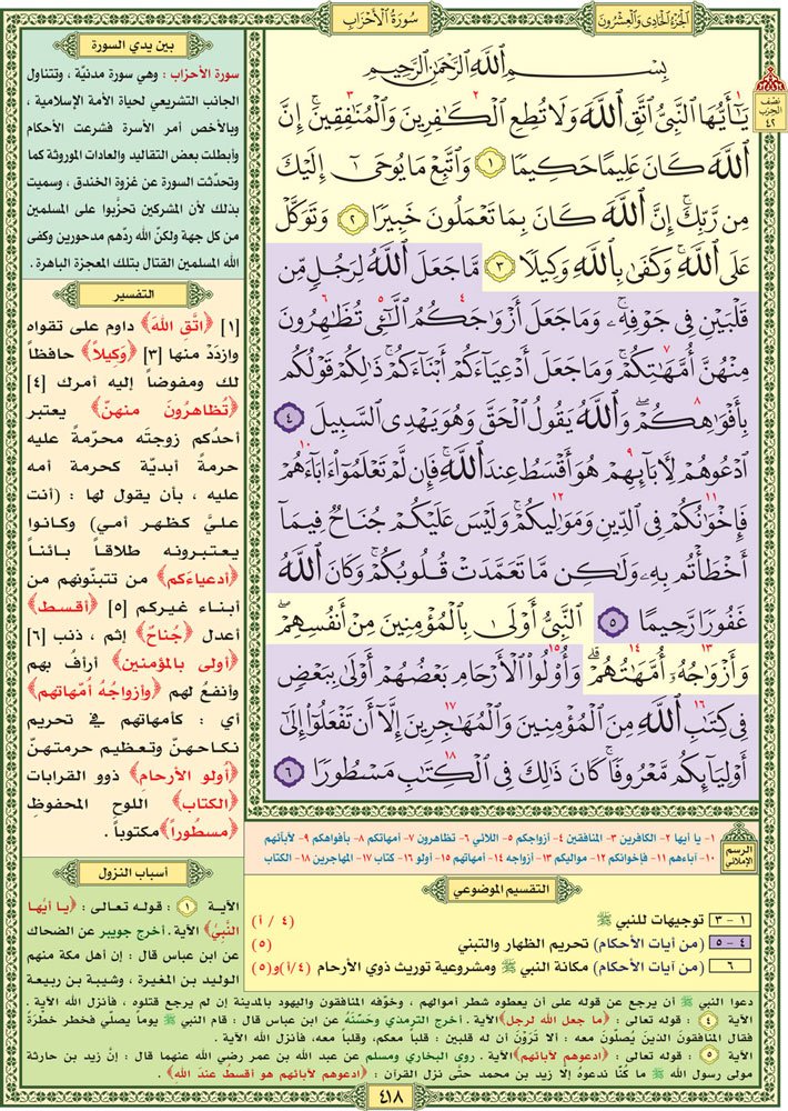 أولاً: هو عبارة عن طريقة مبتكرة لتسهيل حفظ وفهم القرآن الكريم حيث تقسيم ارضية الصحيفة القرآنية إلى ألوان يتميز كل موضوع على حدا وإضافة هوامش على اطراف الصحيفة القرآنية بطريقة مبتكرة ومميزة تتضمن مواضيع متعددة منها ( شرح مفردات الكلمات – اسباب النزول إن وجد – فوائد تفسيرية – رسم إملائي والتفسير الموضوعي.
