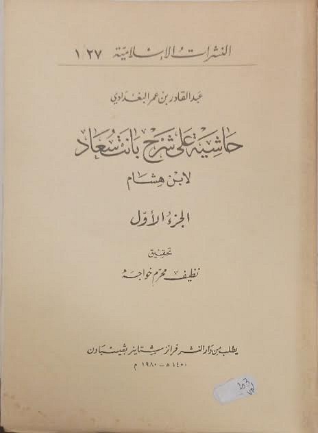 حاشية على شرح بانت سعاد لابن هشام 1/3 Livre