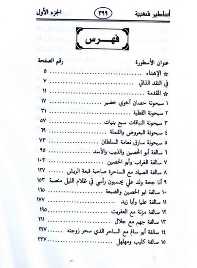 يتناول هذا الكتاب مجموعة الأساطير الشعبية، وهي قصص جميلة فيها الفائدة والعبرة وتعبر عن فكر أجدادنا، ويأتي الحديث في الجزء الأول عن النقد الذاتي، ويحتوي الكتاب على العديد من العناوين هي: في النقد الذاتي، المقدمة، سبحونة حصان أخوي خضير، سبحونة القُطية، سبحونة النباقات سبع بنيات، سبحونة البعروص والقملة، سبحونة سارق نعامة السلطان، سالفة أبو الحصين والذيب والأسد، سالفة الغراب وأبو الحصين، سالفة الصياد مع الساحرة صاحبة قبعة الريش، أنا جحه ولد علي يحسبون رأسي في ظلام الليل منصبه، سالفة أبو الحصين والضبعة، سالفة عاليا وأبا زيد، سالفة مزنه مع العفريت، سالفة جهم مع جلال، سالفة أبو سالم مع الساحر الذي سحر زوجته، سالفة كليب ومهلهل، سالفة قاط قاط، سالفة محسن مع الساحرتين، سالفة الإنسي الذي حاكمه الجن، سالف سالم وزوجته وأخته، سالفة جحه ولد علي مع والده وزوجة والده، سالفة مطوع البدو الجاهل، سالفة جحه مع المرابي، سالفة ولد الفني الذي افتقر، سالفة بنت زارع الكمون، سالفة الأصيقع والأبيقع، سبحونة الأمير المشرد، سالفة السلطان وابنته الوحيدة، جدول بتفسير الكلمات الشعبية.