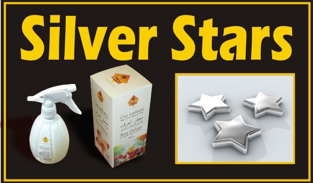 Eau parfumée désodorisante Musc d'Or "Silver Stars" - Pour literies, salons, rideaux, vêtements, sièges de voitures, etc. Fini les mauvaises odeurs. Bien agiter avant utilisation.