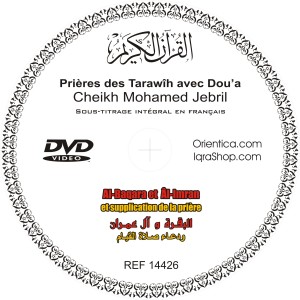 Prières des Tarawîh avec Dou’a - Cheikh Mohammed JebrilSous-titrage intégral en françaisMuhammad-Muhammad Al Said Hussayn Jebril, connu dans le monde musulman sous le nom de « Cheikh Jebril » est licencié de droit musulman de l'Université d'Al Azhar. Il a appris le Coran à l’âge de 9 ans. Plus d'une fois, Cheikh Jebril a gagné les concours égyptiens et internationaux de récitation du Coran. Il a été nommé Imam de la célèbre mosquée 'Amr Ibn Al'Ass du Caire en 1988. Chaque année, vers cette mosquée afflue des dizaines de milliers de personnes durant le mois de Ramadan pour assister aux prières de Tarawîh qu’il préside. Cheikh Muhammad Jebril est également professeur à l'université de Jordanie. Il a à son actif plusieurs récitations complètes du Coran. Il a participé et organisé de nombreuses émissions télévisées dans plusieurs chaînes du monde arabe autour des thèmes coraniques. Enfin, Cheikh Jebril est particulièrement apprécié pour la qualité de ses “Dou'as Al Qunût” (invocations faites durant la prière).Ce DVD contient l'enregistrement vidéo des prières de Tarawîh faites à la mosquée ‘Amr Ibn Al-'Ass durant le mois de Ramadan 2005. Les sourates psalmodiées sont : Al-Baqara (La vache) , Âl-’Imrân (La famille d'Imran) et invocation de fin de récitation du Saint Coran (Dou’a Khatm Al Qur’ân).
