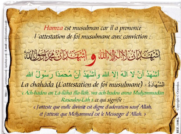 Puzzle personnalise 80 pieces : La Chahada (L'attestation de foi musulmane) - Bilingue francais/arabe -