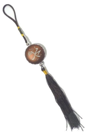 Pendentif en bois avec pompon sculpté avec les calligraphies "Allah" sur une face et Mohammed (saw) sur l'autre - REF. 23555 (1.90 €)