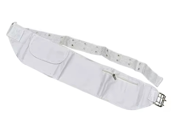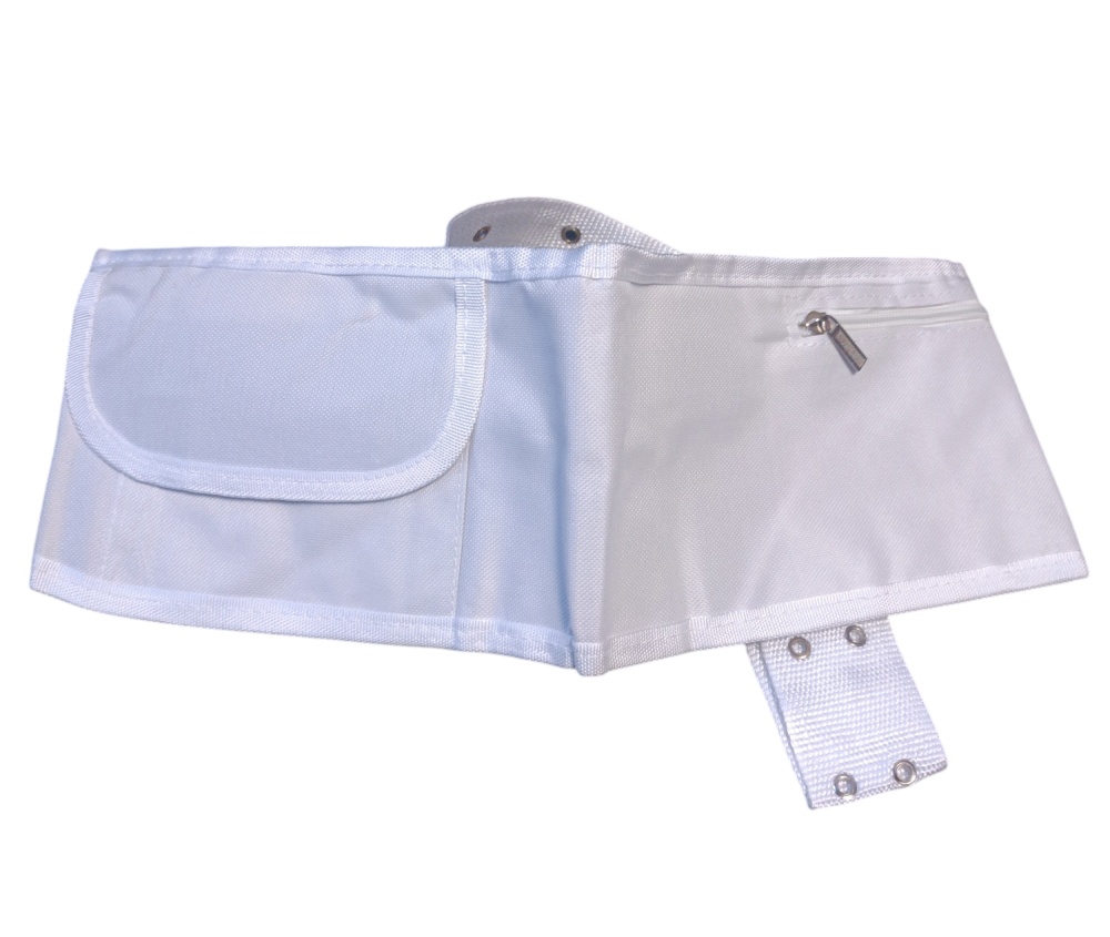 Ceinture pour le Hadj et la 'Oumra avec poches intégrées, de couleur blanche assortie au Ihrâm. Trois grandes poches (1 poche à scratch et 2 poches zip) idéals pour ranger ses papiers, son argent, livre de poche, etc.