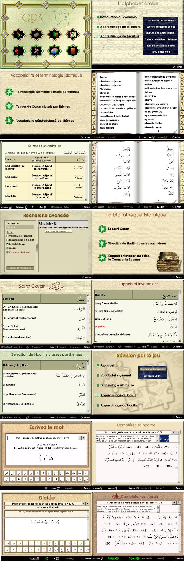 Spécialement conçu pour un public francophone, ce cédérom exploite les techniques du multimedia pour l'apprentissage de la langue arabe, du Saint Coran, des Hadiths et dou'a du Prophète (BSDL) ainsi que du vocabulaire islamique que l'on retrouve dans les livres de Fiqh (jurisprudence).