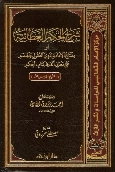 يقدم لكم مركز المام الثعالبي للدراسات و نشر التراث هذا الكتاب الثمين:" شرح الحكم العطائية او مفتاح الافادة لذوي العقول و الهمم على معاني الفاظ كتاب الحكم" للعلامة الشيخ احمد زروق الفاسي المتوفي سنة 899هـ و قد قام الاستاذ مصطفى مرزوقي بتحقيق هذا الكتاب ليكون اليوم متاحاً لكل القراء