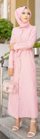 Robe à rayures noires de couleurs rouge framboise (Vêtement turque femme moderne) - REF. 30240 (25.00 €)