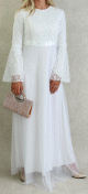 Robe de soirée ou de cérémonie élégante et classe en tulle et dentelle pour femme - Marque Amelis Paris - Couleur Blanche - REF. 33395 (49.00 €)
