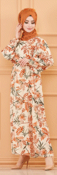 Robe longue et ample à fleurs pour femme (Vêtement hijab mastour) - Couleur beige - REF. 36588 (29.90 €)