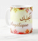 Mug avec le prénom "Abd-El-Qabidh" écrit en français, en arabe (عبد القابض) et calligraphié de façon artistique en arabe sur la partie droite.