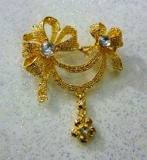 Broche pour Hijab doree en forme de noeud avec pierres diamantees