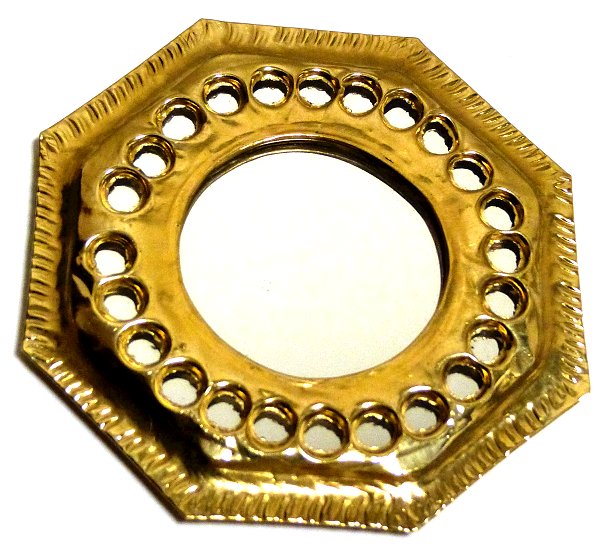 Petit miroir artisanal sous forme octogonale fabrique en cuivre joliment cisele (8 cm de diametre)