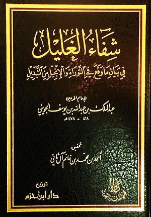 " شفاء الغليل في بيان ما وقع في التوراة والإنجيل من التبديل " تصنيف الإمام العلامة حجة الإسلام أبي المعالي إمام الحرمين الجويني . يعدّ هذا الكتاب القيّم من أهم كتب مقارنة الأديان و الرد على النصارى واليهود في إثبات تزوير الإنجيل و التوراة الذي بين أيديهم . و قد قام الأستاذ أحمد بن محمد بن غانم آل ثاني بتحقيق هذا الكتاب القيم الذي بين أيديكم اليوم .
