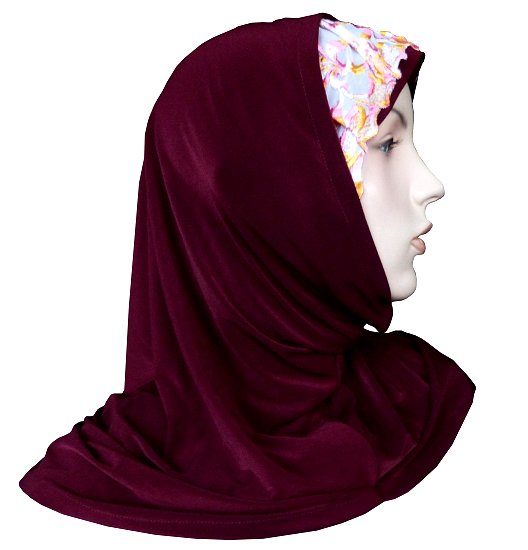 Hijab deux pièces de couleur grenat avec dentelle à motif fleuris (rose, bleu ciel...)