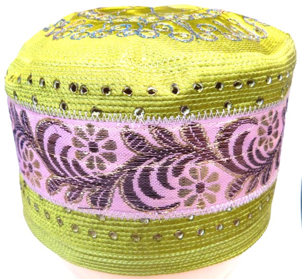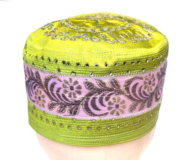 Chachia traditionnelle de couleur vert clair avec décoration tout autour... De petits trous discrets permettent la respiration de la tête pour un meilleur confort.