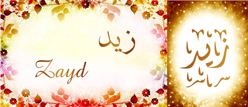 Signification (sens) du prénom Zayd (Zayd, Zaïd) زَيْد: Surabondance, excès. Zayd Ibn Hâritha est un des premiers compagnons du Prophète Muhammad et le seul à avoir été nommément cité dans le Coran.