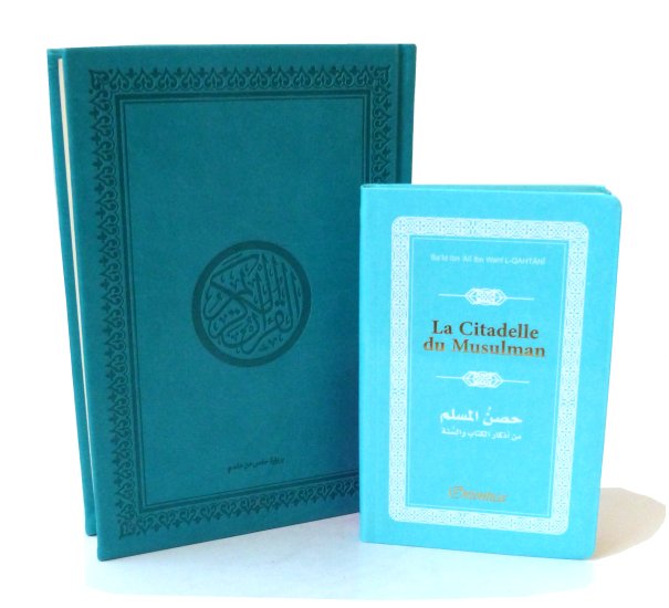 Pack Cadeau Musulman Vert-Bleu avec 3 livres en français/arabe/phonétique : Le Saint Coran, Chapitre Amma (Petites sourates) et La Citadelle du Musulman (Invocations) - REF. 28473 (29.90 €)