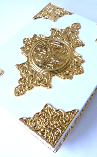 Grand Coffret de luxe blanc en bois pour Coran avec parties dorées fourni avec son Support doré - REF. 23482 (39.00 €)