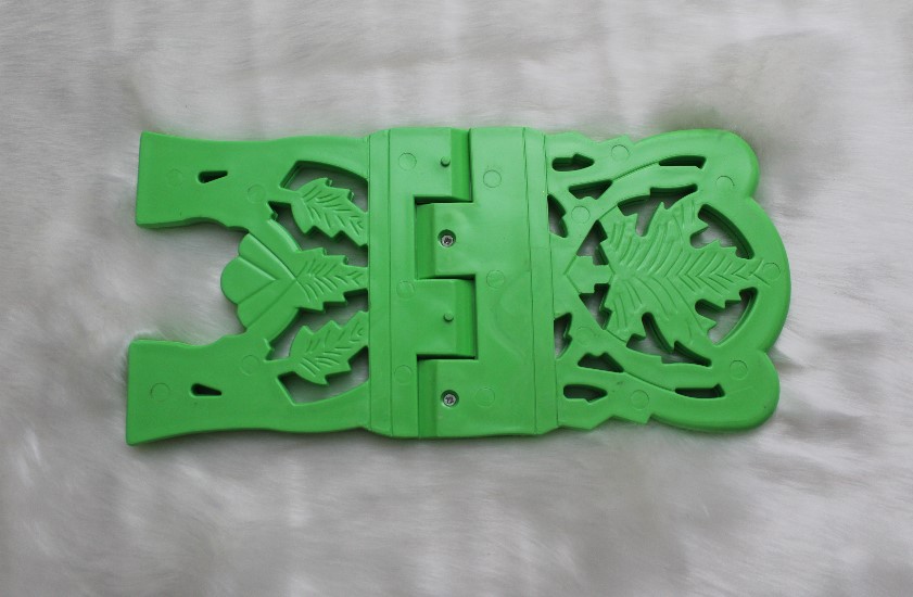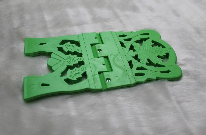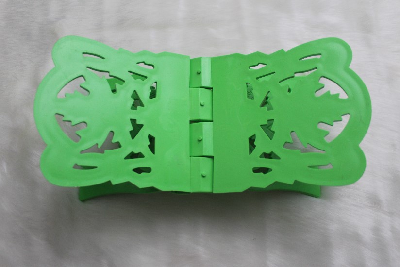 Porte livre léger et lavable en plastique rigide de couleur vert, avec motifs de feuilles.