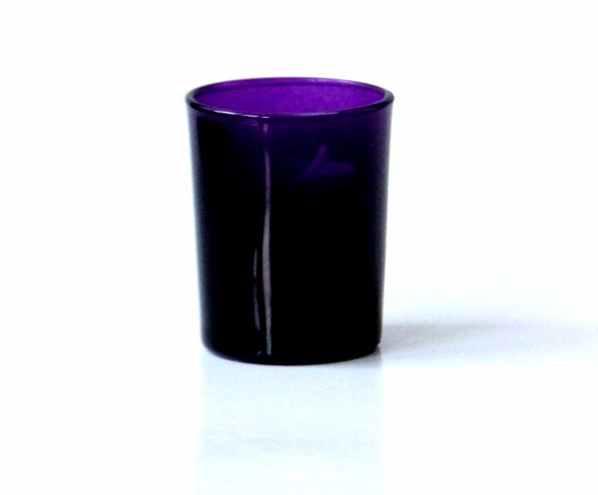 Bougie parfumée sous forme de fleur dans un verre violet pour un bel effet de lumière.