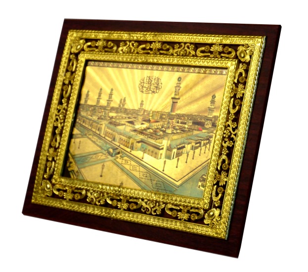 Tableau decoratif en bois : La Mosquee de Medine avec decoration doree