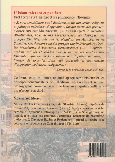A noter également la présentation du Dr Ammar Talbi, qui constitue à elle seule une référence indéniable, précise l’auteur Mohamed Massen, qui s’est lancé dans l’écriture de ce livre à la demande des médersas mozabites en Europe, «où le besoin d’un livre d’histoire ibadite en français se ressentait.