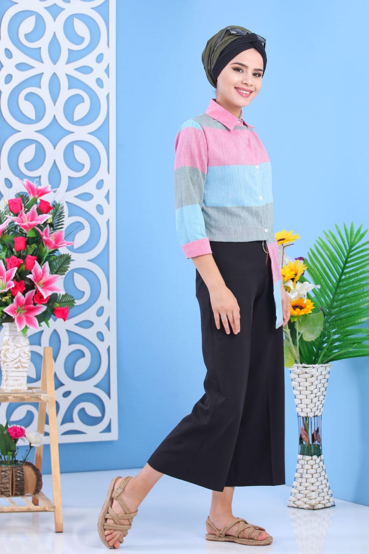 Chemise tricolore rose, bleu et vert, ultra légère et facile à porter, manches longues avec fermeture boutons. Vous pouvez la porter avec tout type de pantalon.