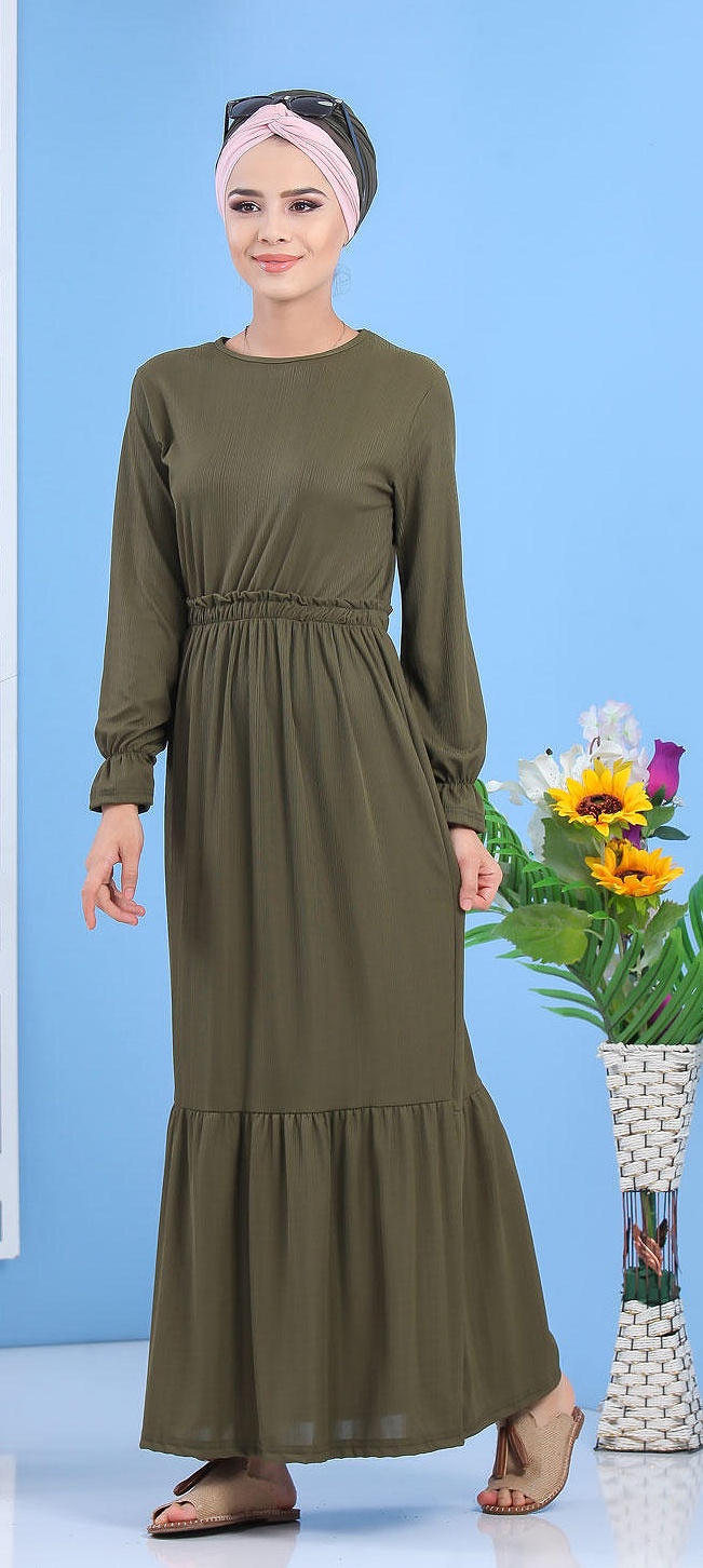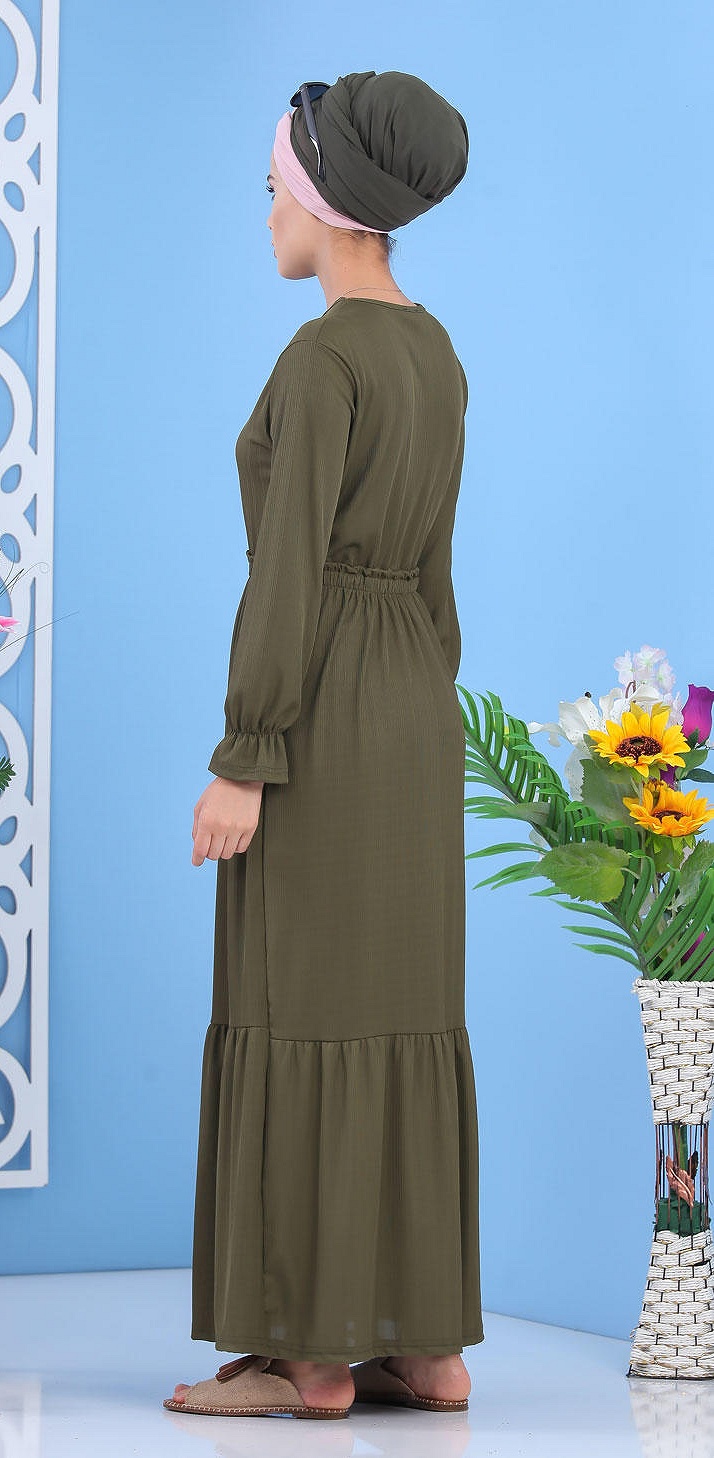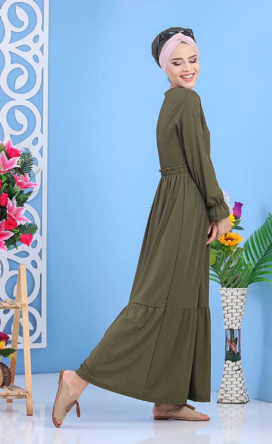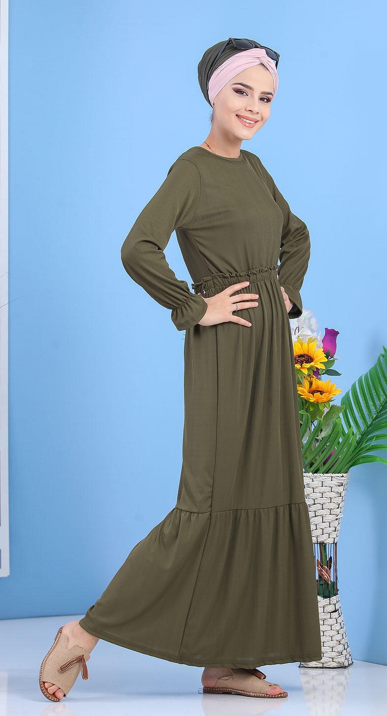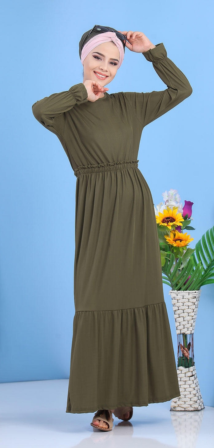 Robe longue decontractee effet strie pour femme - Couleur kaki