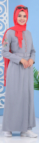 Robe longue boutonnée avec ceinture et broderies - Couleur gris (Vêtements islamiques pour femmes musulmanes voilées) - REF. 32583 (49.90 €)