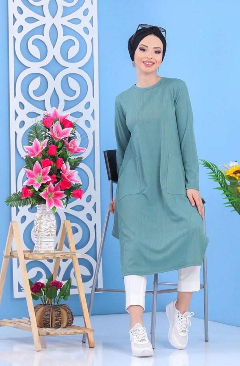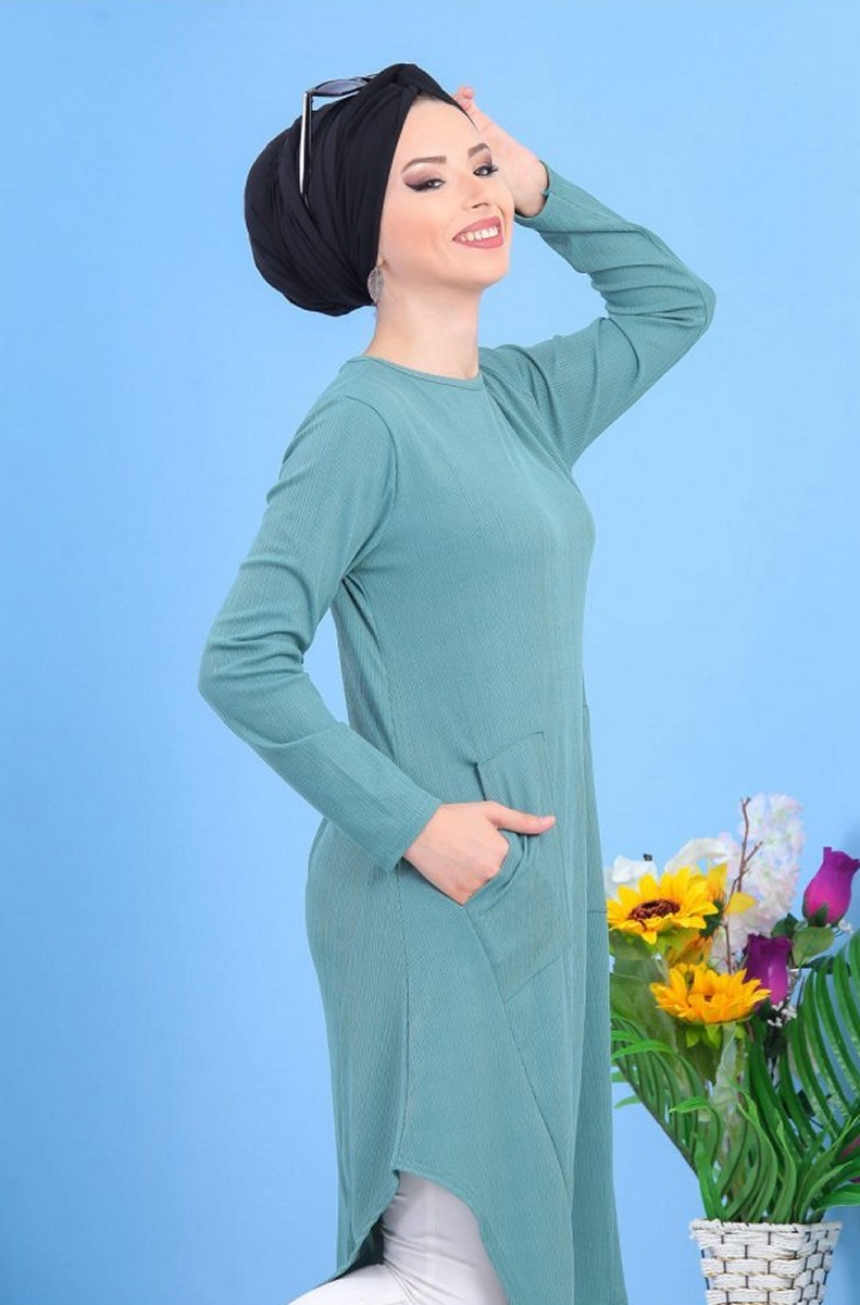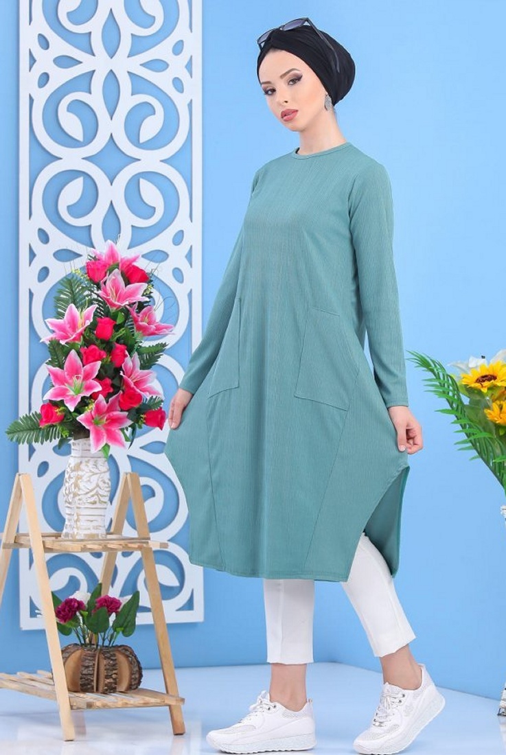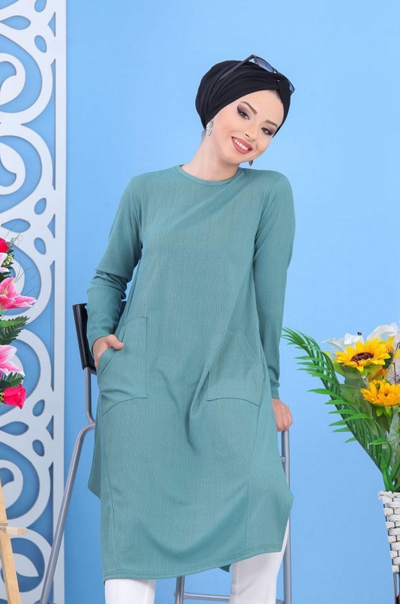 Tunique mi-longue, col rond, coupe évasée, 2 poches plaquées, tissu effet strié. Rien de tel qu'une tunique de ce style pour vous sentir à l'aise il ne vous reste plus qu'à trouver le bas qui lui correspondra.